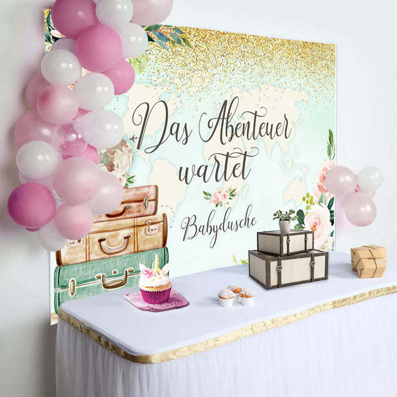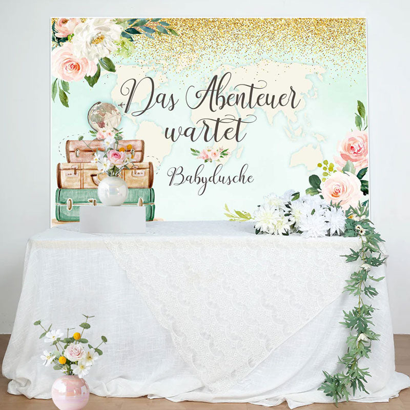 Abenteuer Erwartet Blumen Karte Baby Dusche Hintergrund
