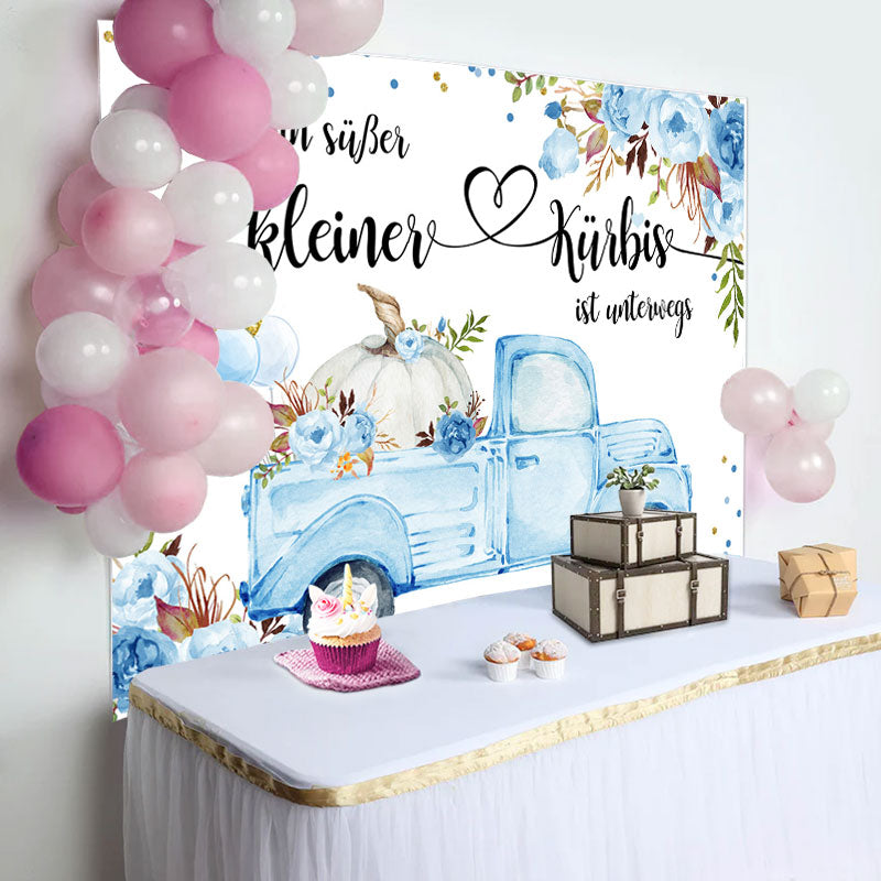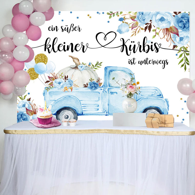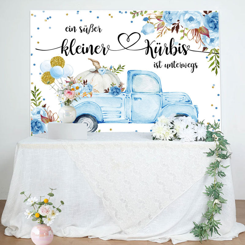 Blau Auto Blumen Kürbis Baby Dusche Hintergrund