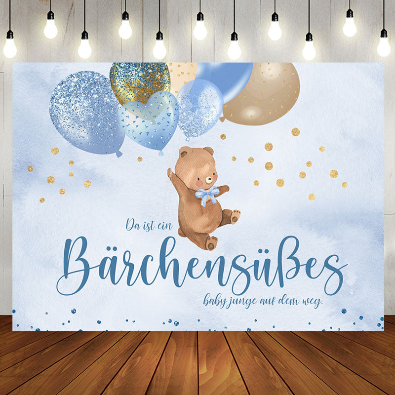 Blau Luftballons Teddy Tragen Baby Dusche Hintergrund