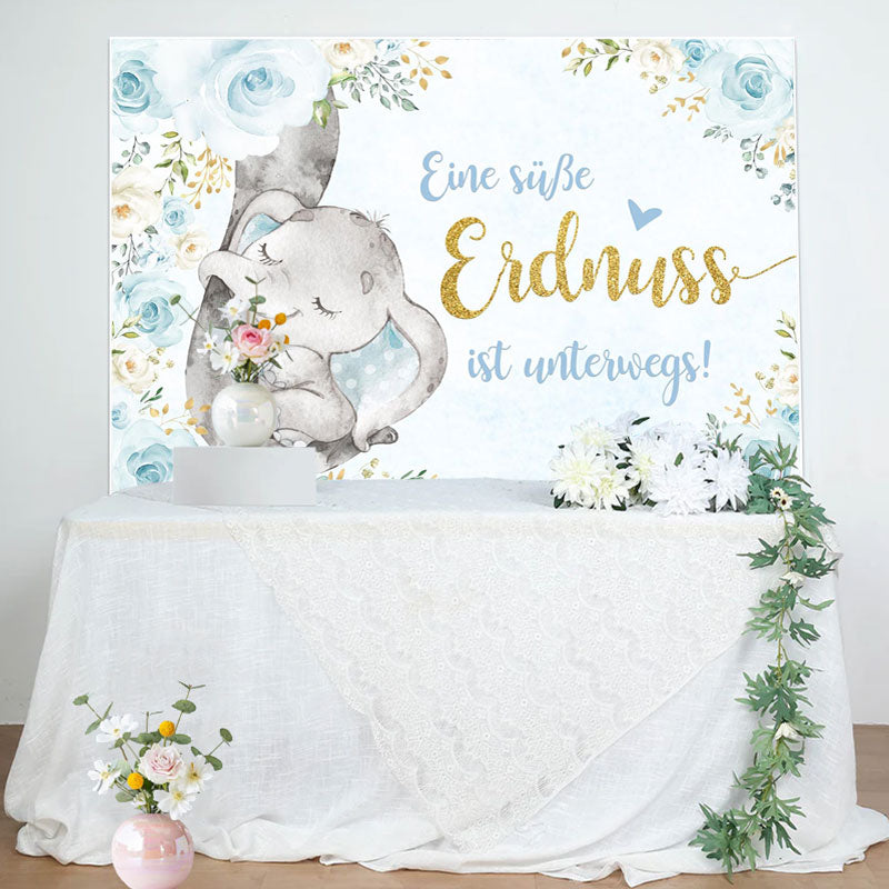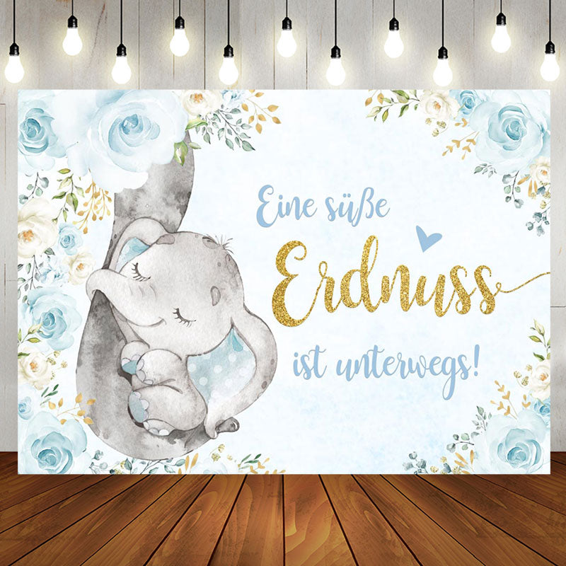 Blau Rose Und Elefant Hintergrund für Baby Dusche