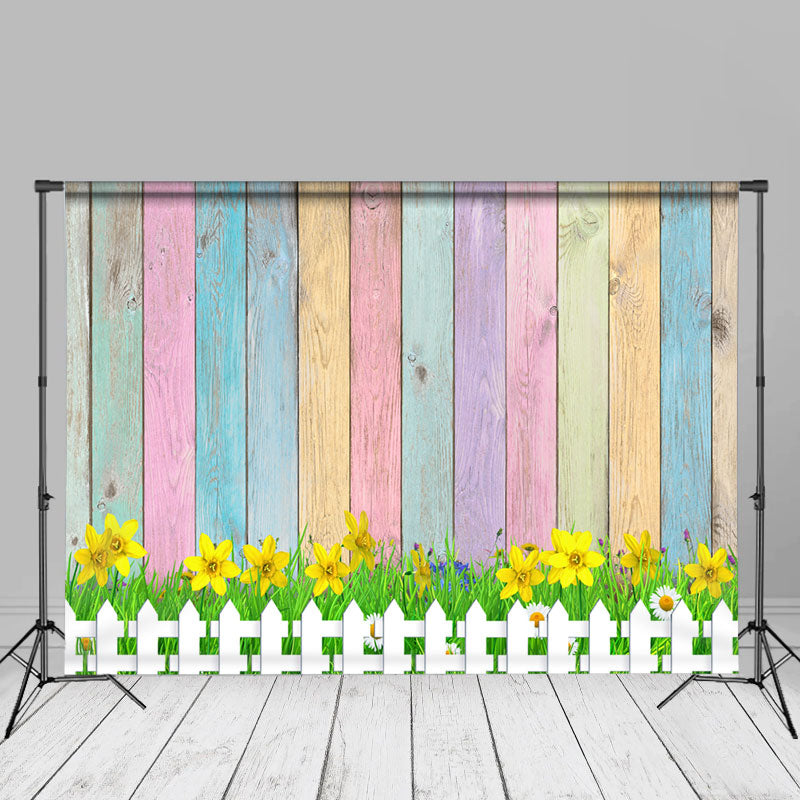 Gelbe Blumen Regenbogen Holzhintergrund für Foto