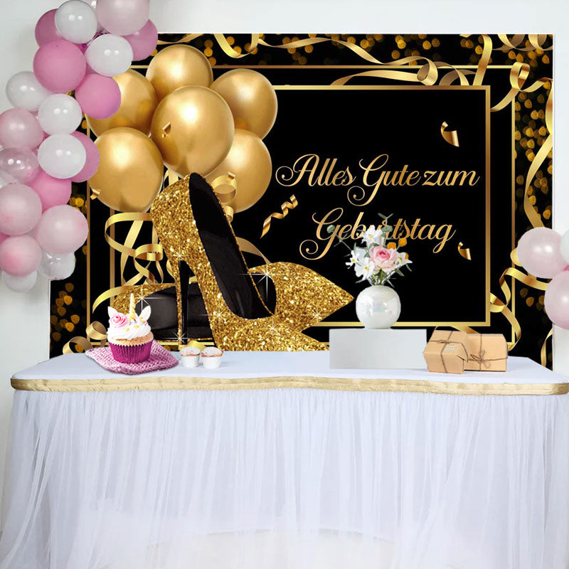 Gold Absätze Und Luftballons Schwarz Geburtstag Hintergrund