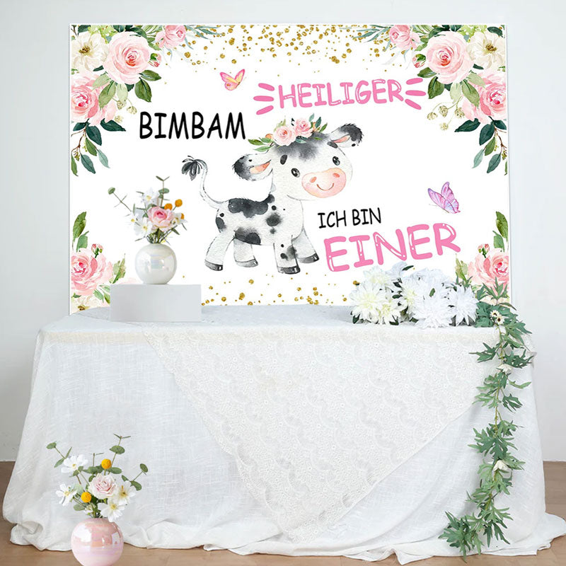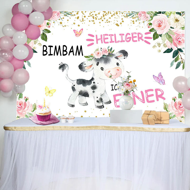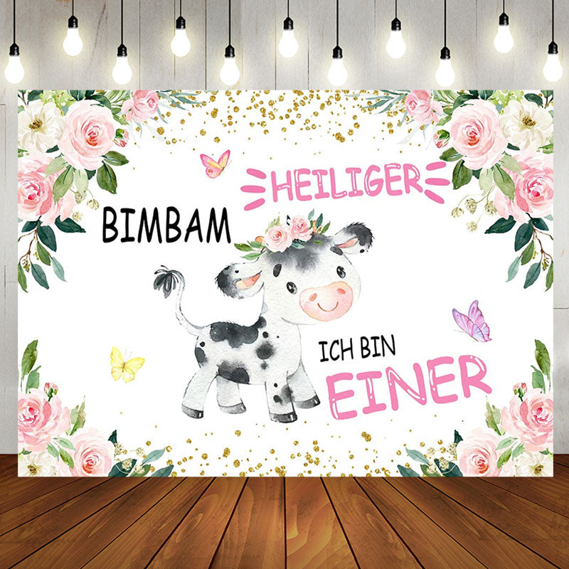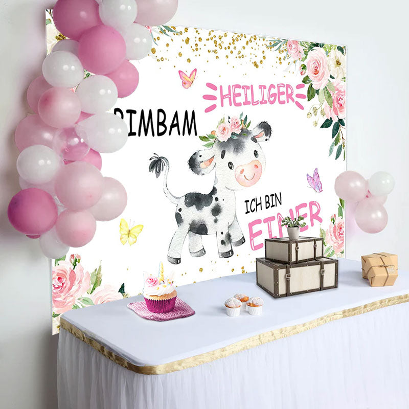 Heilig Kuh Rosa Blumen Erste Geburtstag Hintergrund für Mädchen