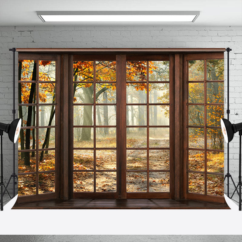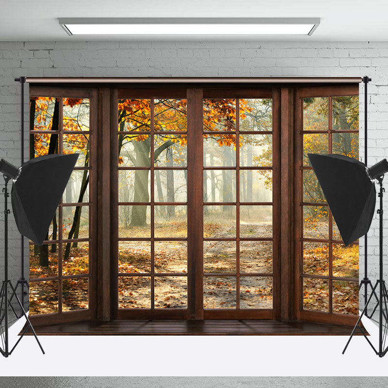 Herbstwald Fotohintergrund vor raumhohen Fenstern