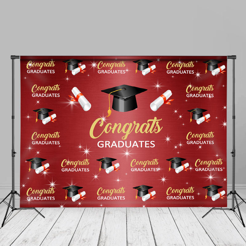 Herzlichen Glückwunsch Absolvent Mortarboard roter Hintergrund für Fotos