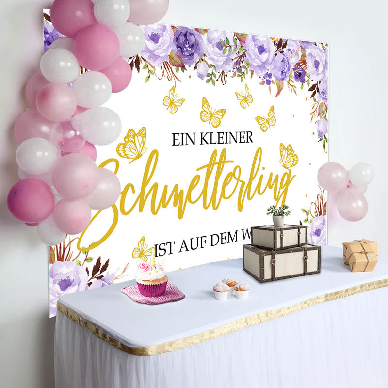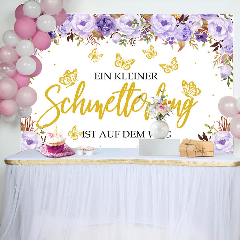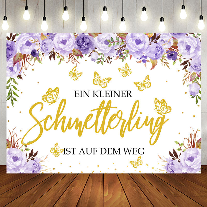 Lila Blumen Golden Schmetterling Baby Dusche Hintergrund