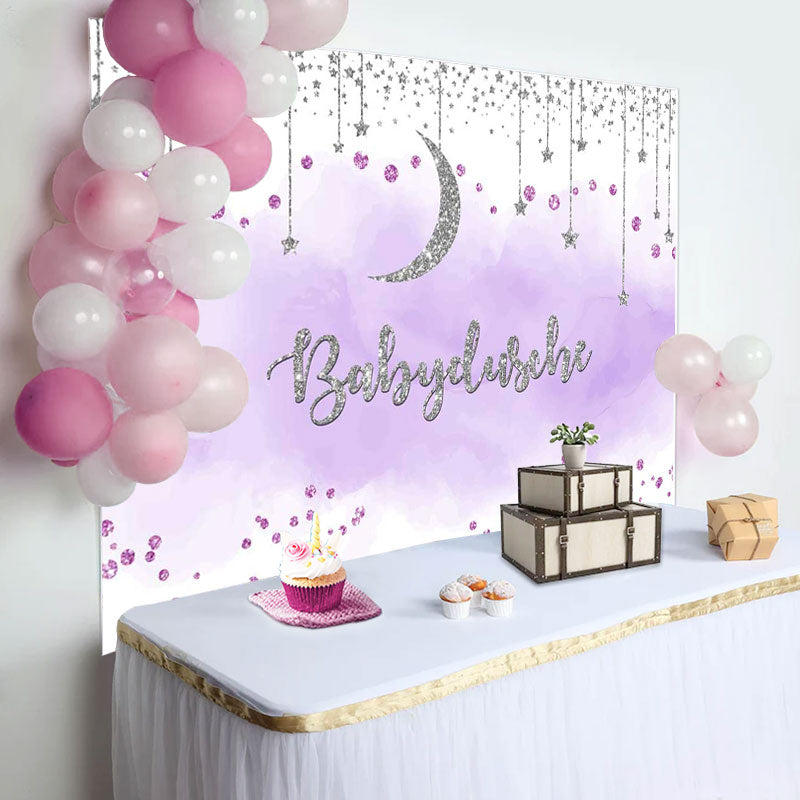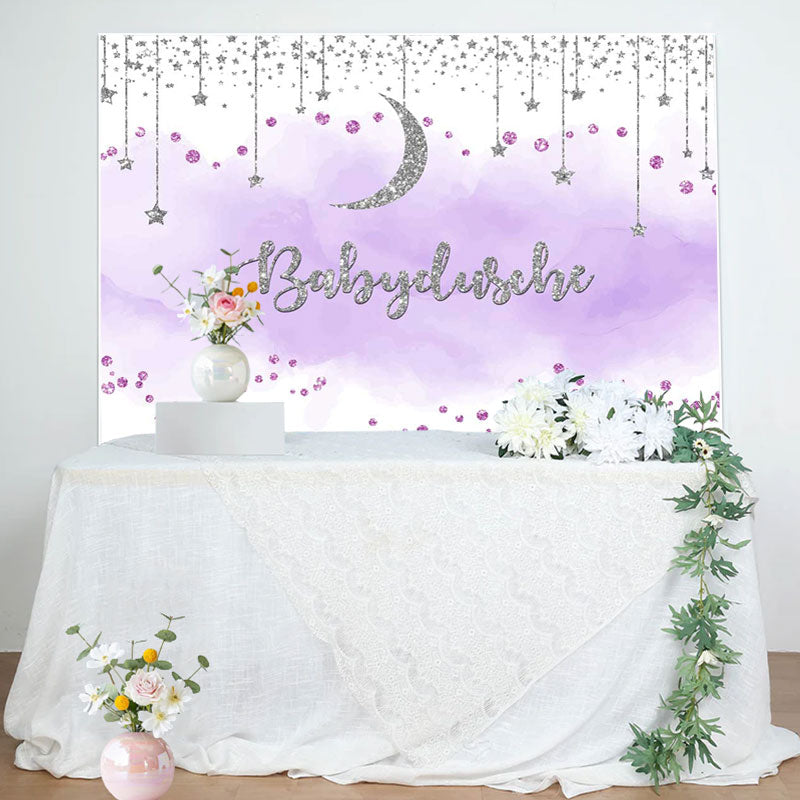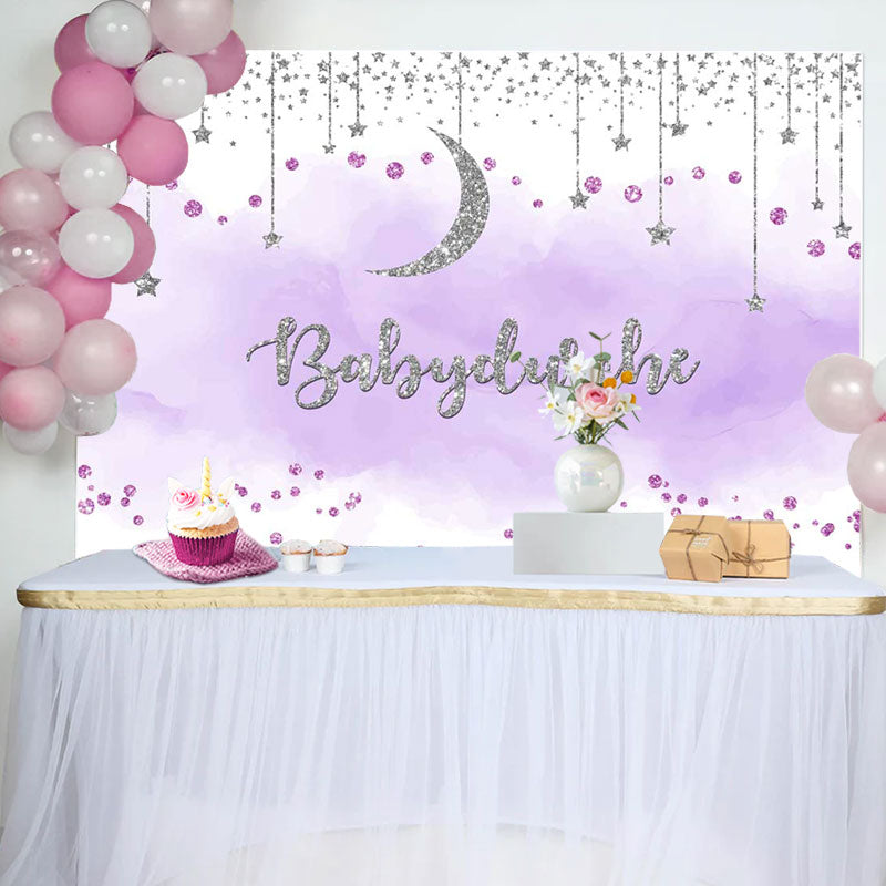 Lila Silber Funkeln Mond Baby Dusche Hintergrund