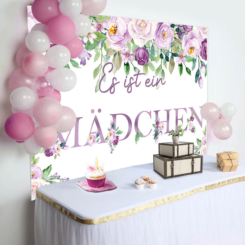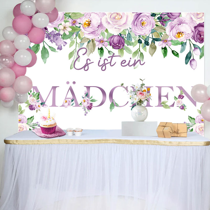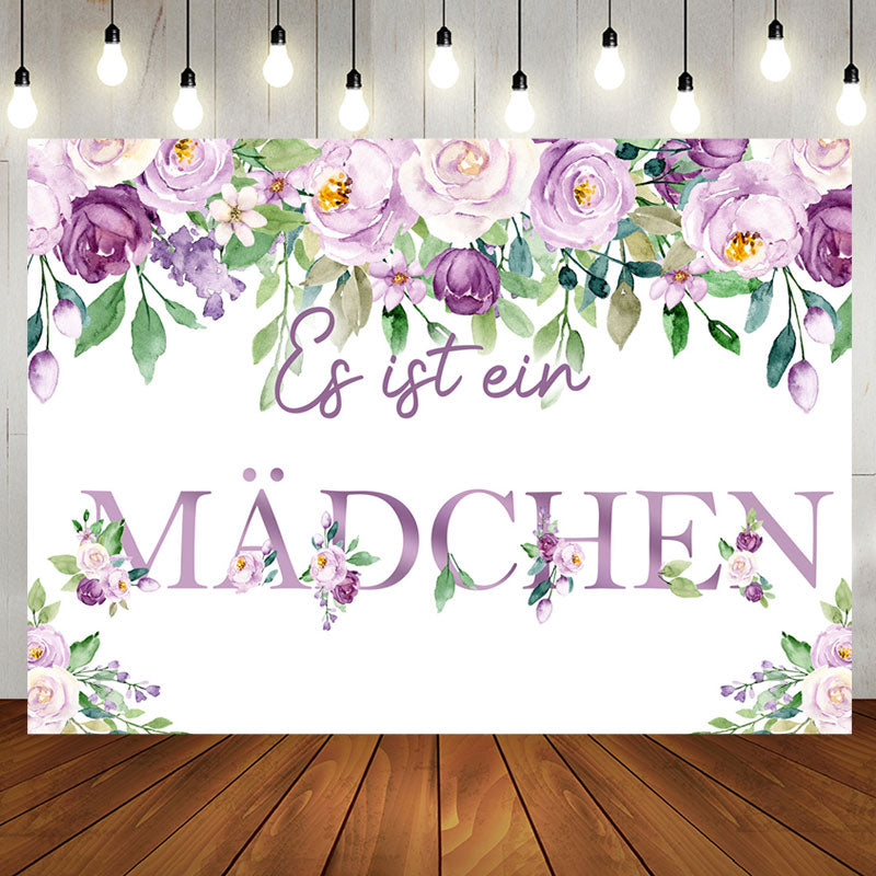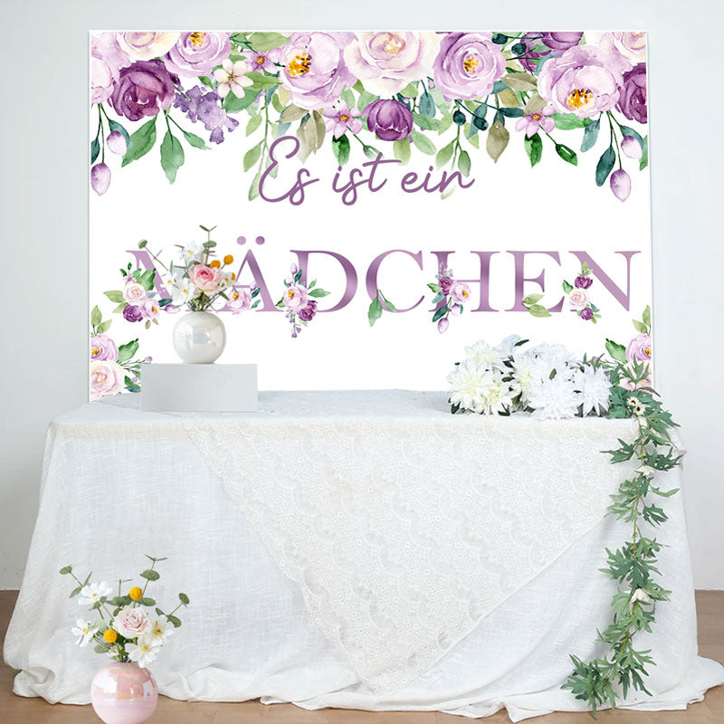 Mädchen Lila Blumen Weiß Baby Dusche Hintergrund