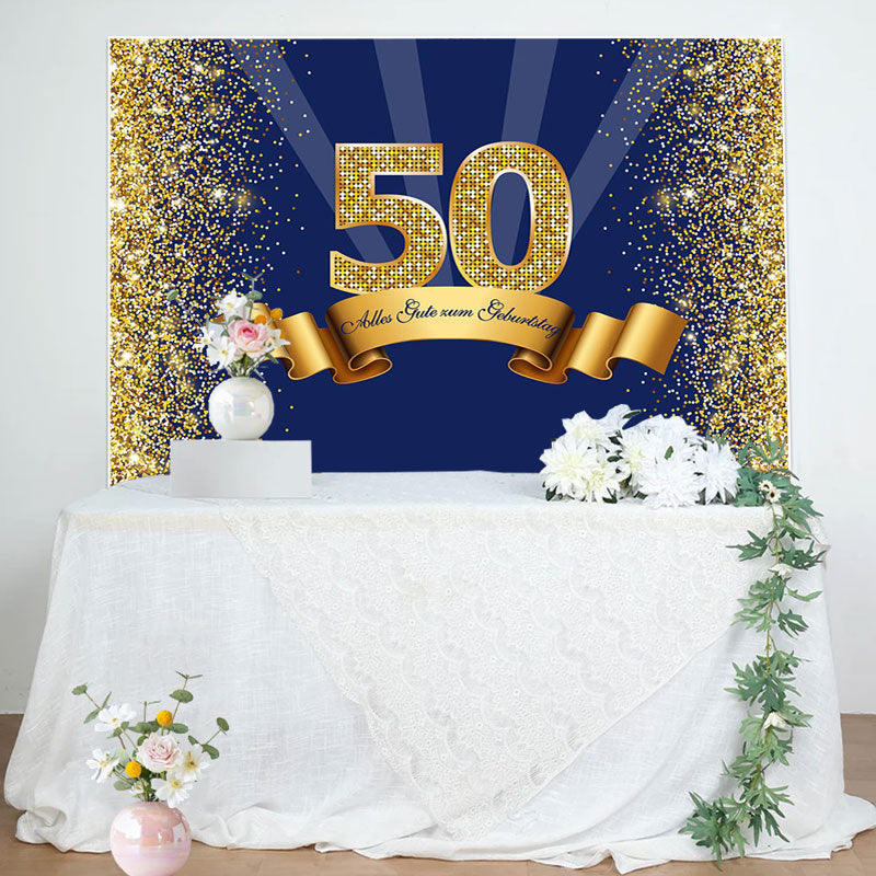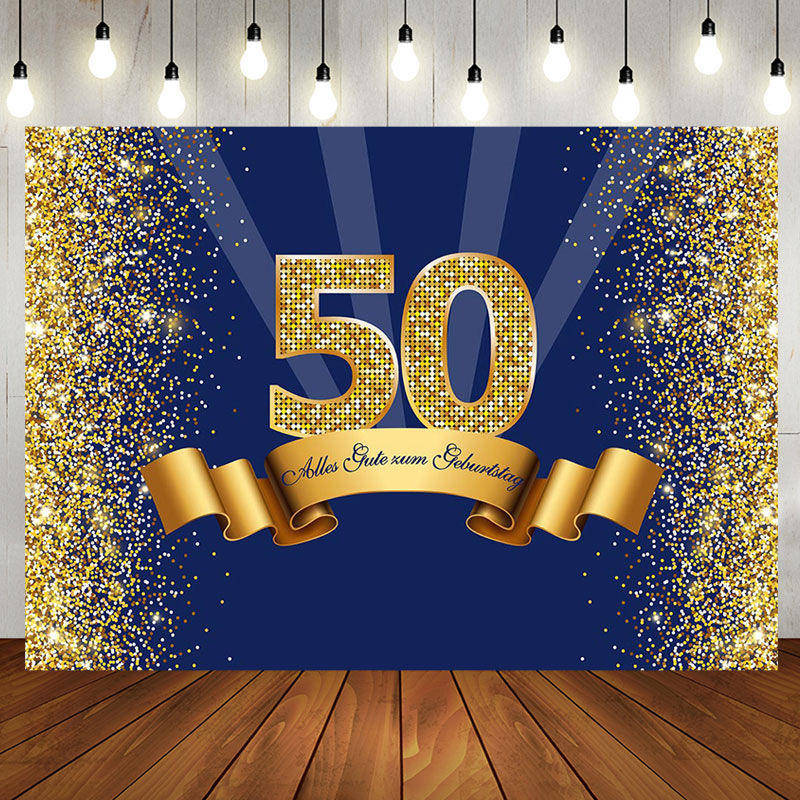 Marine Blau Und Gold 50 Geburtstag Hintergrund