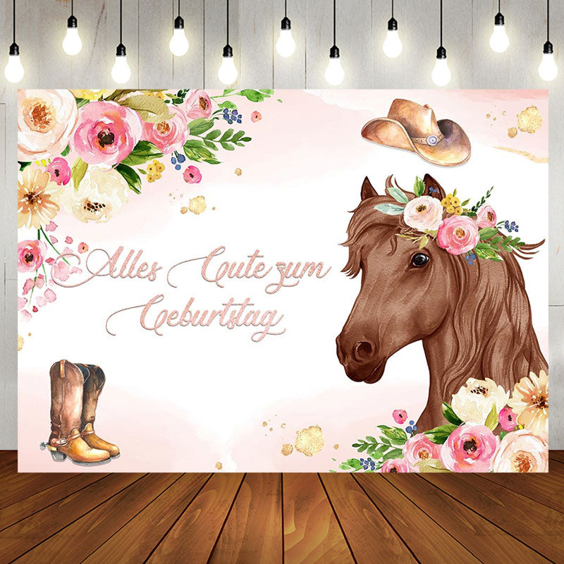 Rosa Blumen Und Pferd Cowboy Geburtstag Hintergrund