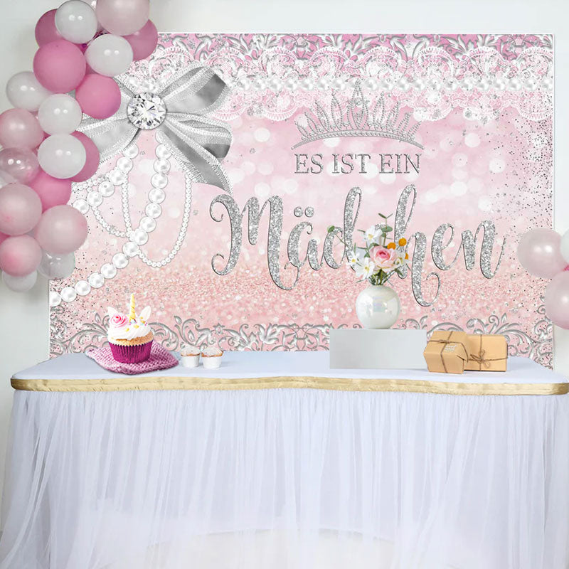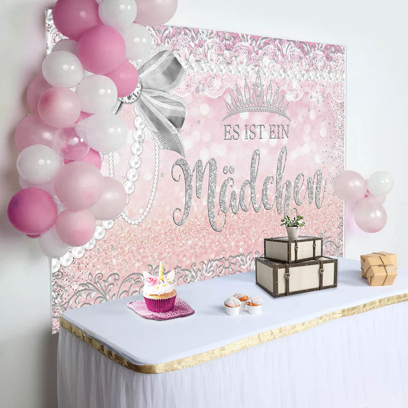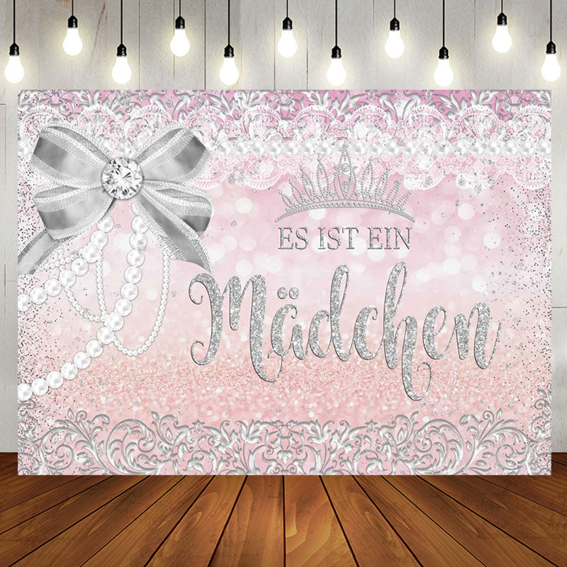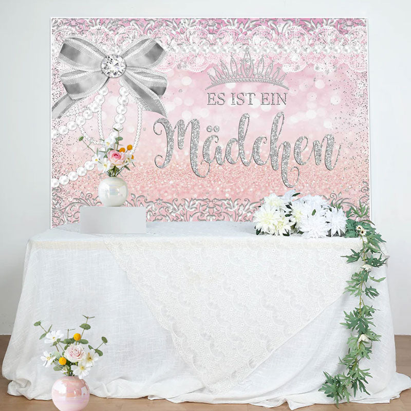 Rosa Silber Bogen Krone Baby Dusche Hintergrund