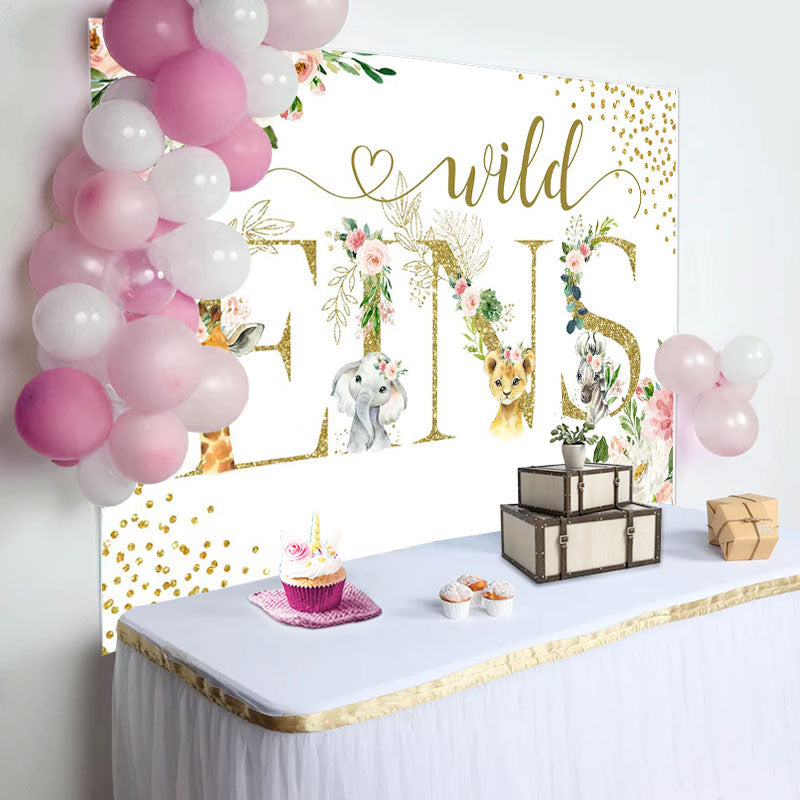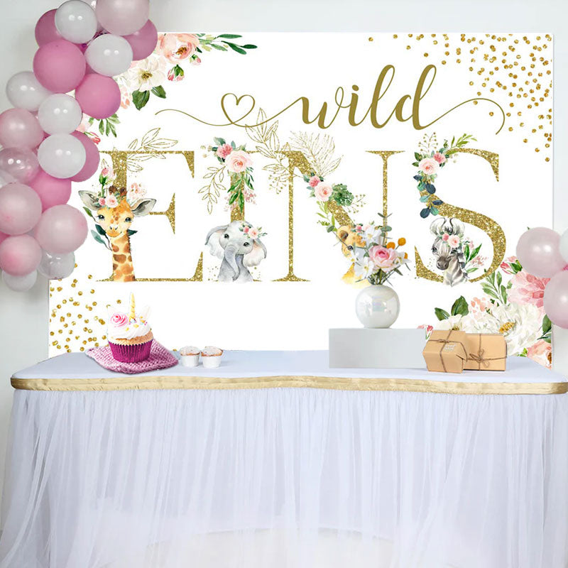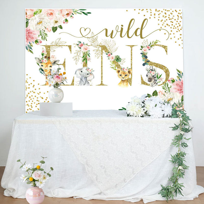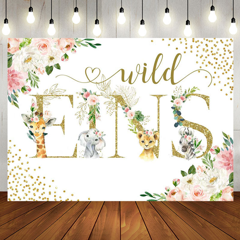 Safari Blumen Funkeln Wild Eins Geburtstag Hintergrund