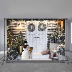 Schneemann weiße Tür Haus Kranz Weihnachtskulisse