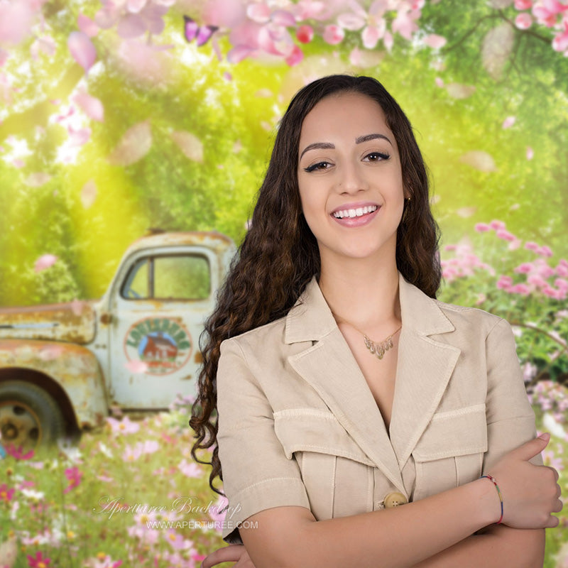 Sonnenlicht rosa Blumenauto Frühling Hintergrund für Party