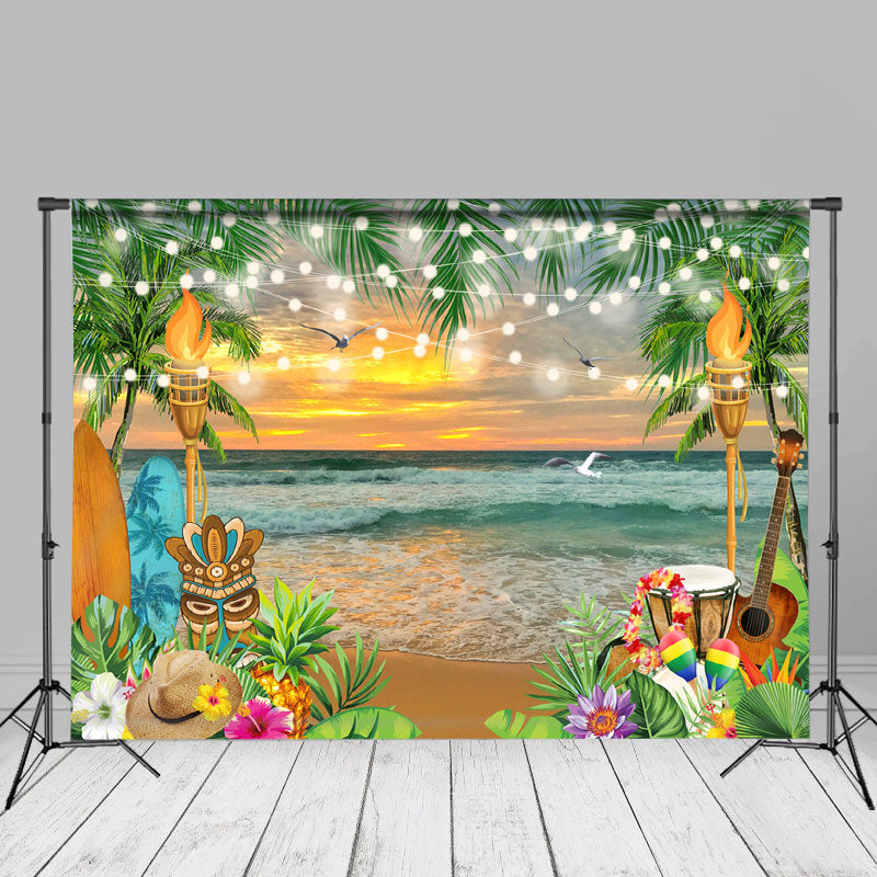 Sonnenuntergang Strand Surfbrett Gitarre Sommer Foto Hintergrund
