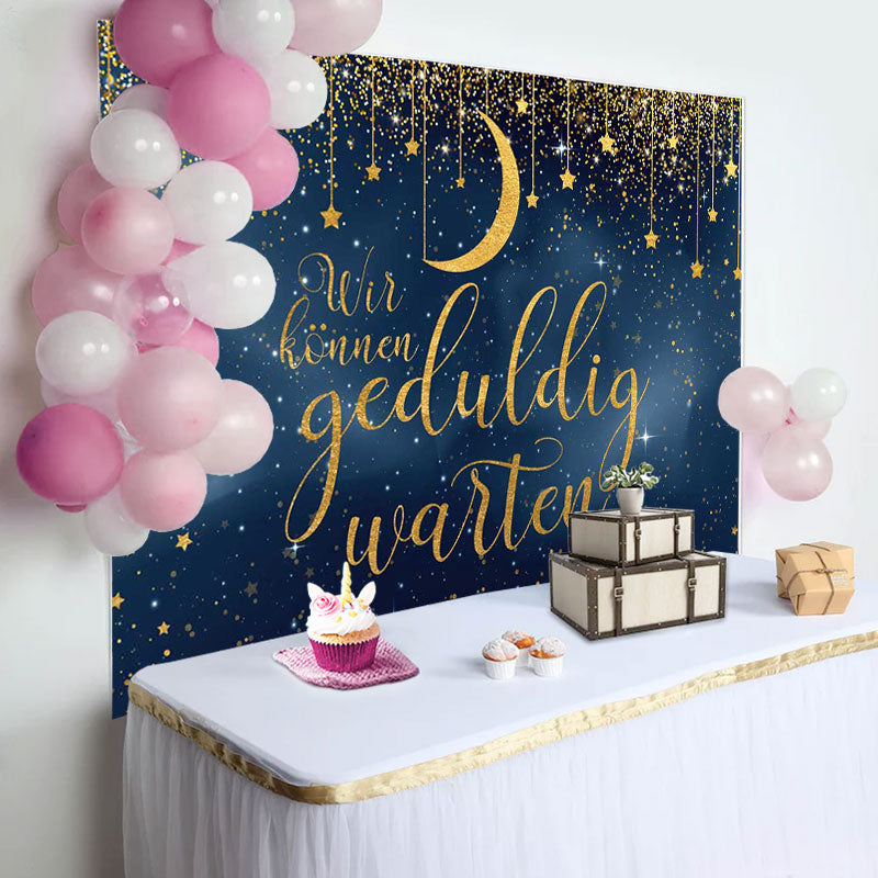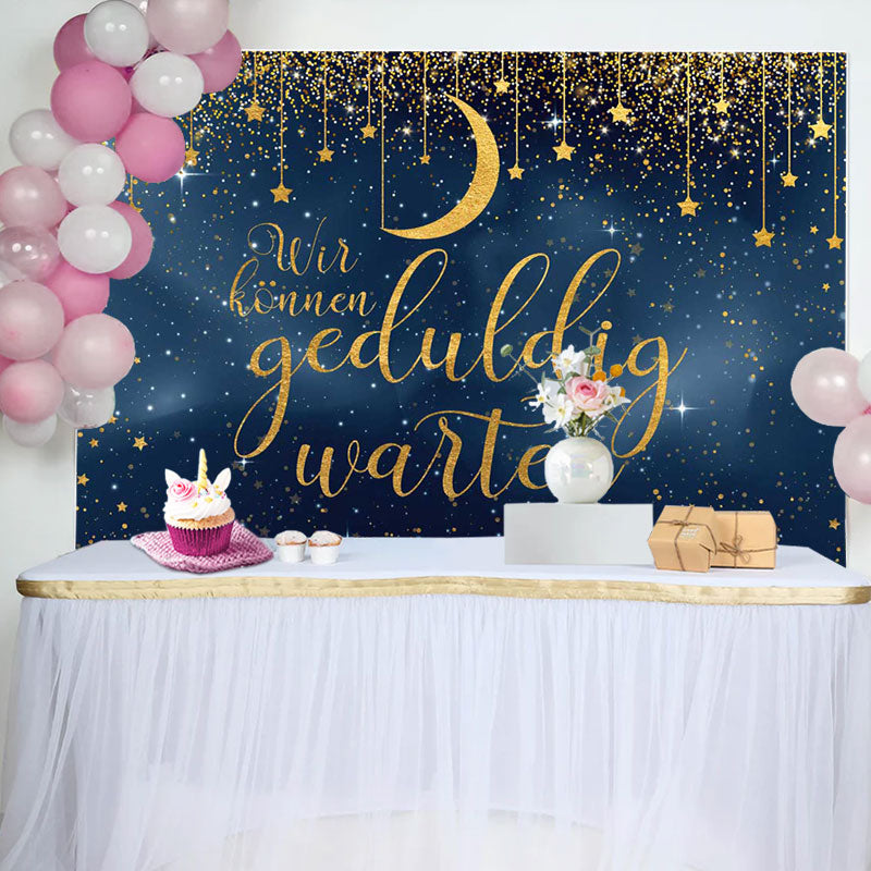 Über Mond Blau Golden Stern Baby Dusche Hintergrund
