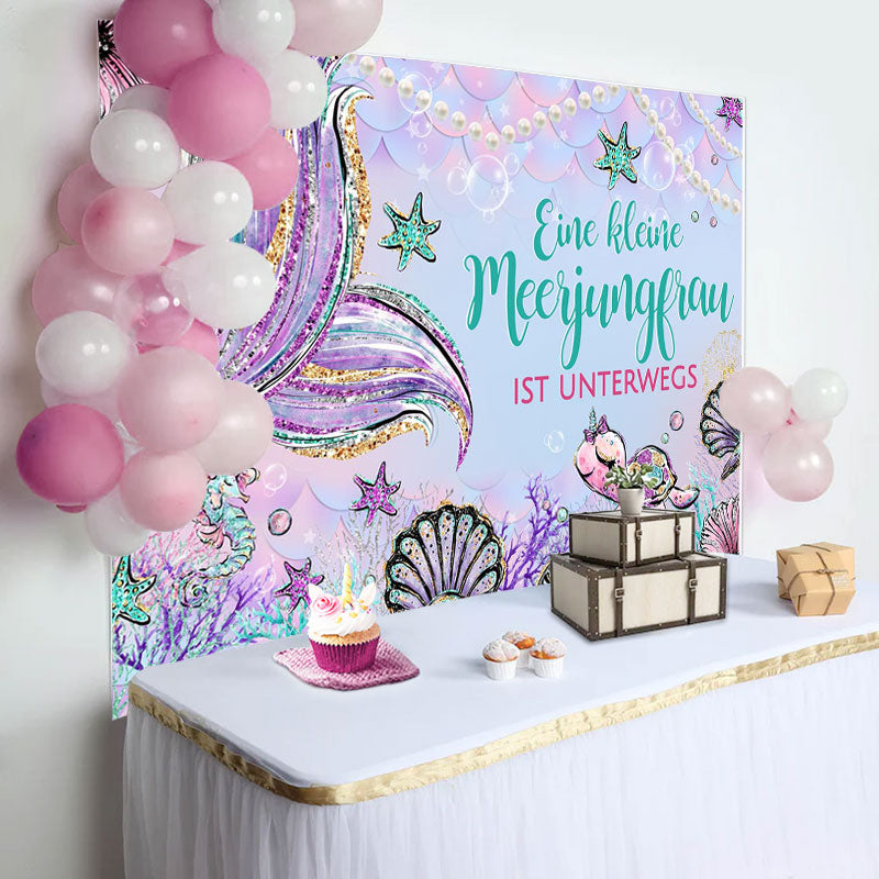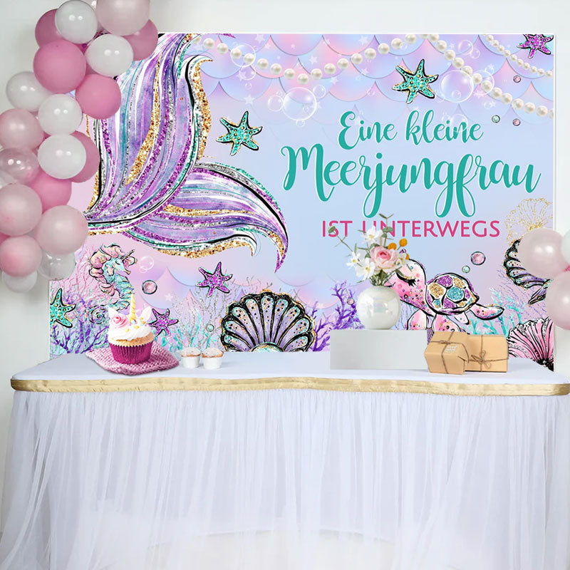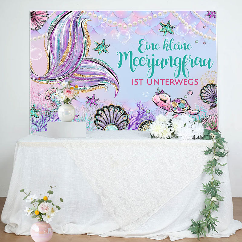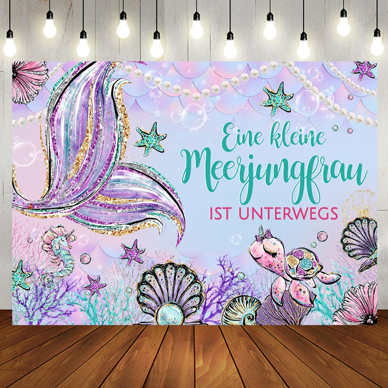 Wenig Meerjungfrau Ist An Der Weg Baby Dusche Hintergrund