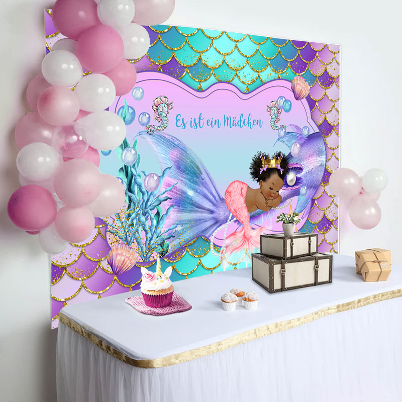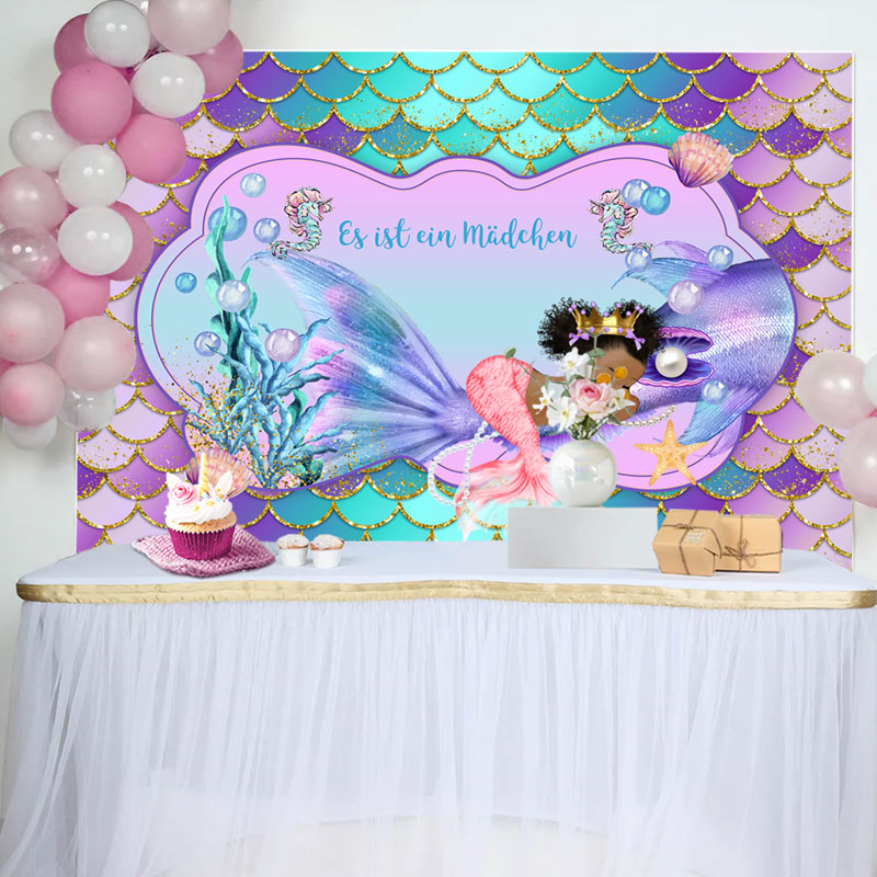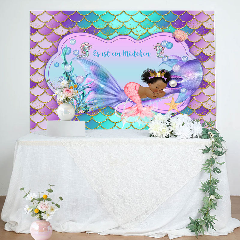 Wenig Meerjungfrau Lila Mädchen Baby Dusche Hintergrund